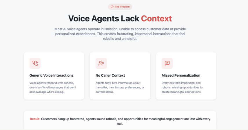 π― Bring Context to Every Call Empower your AI voice agents to speak with contextβinstantly and automatically. This simple yet powerful automation creates a better, more human voice experience with every interaction.