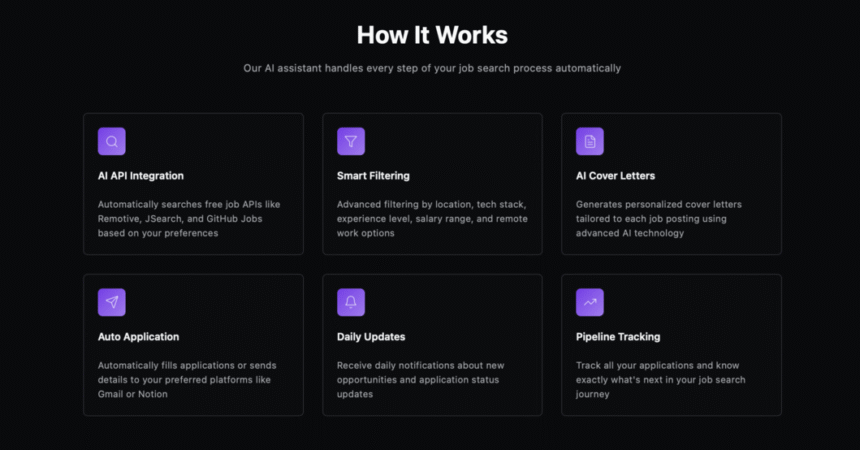 This smart assistant automates the job application process by using free job board APIs to find relevant job listings based on your preferences, filter opportunities, and even draft personalized applications – saving you hours every day.